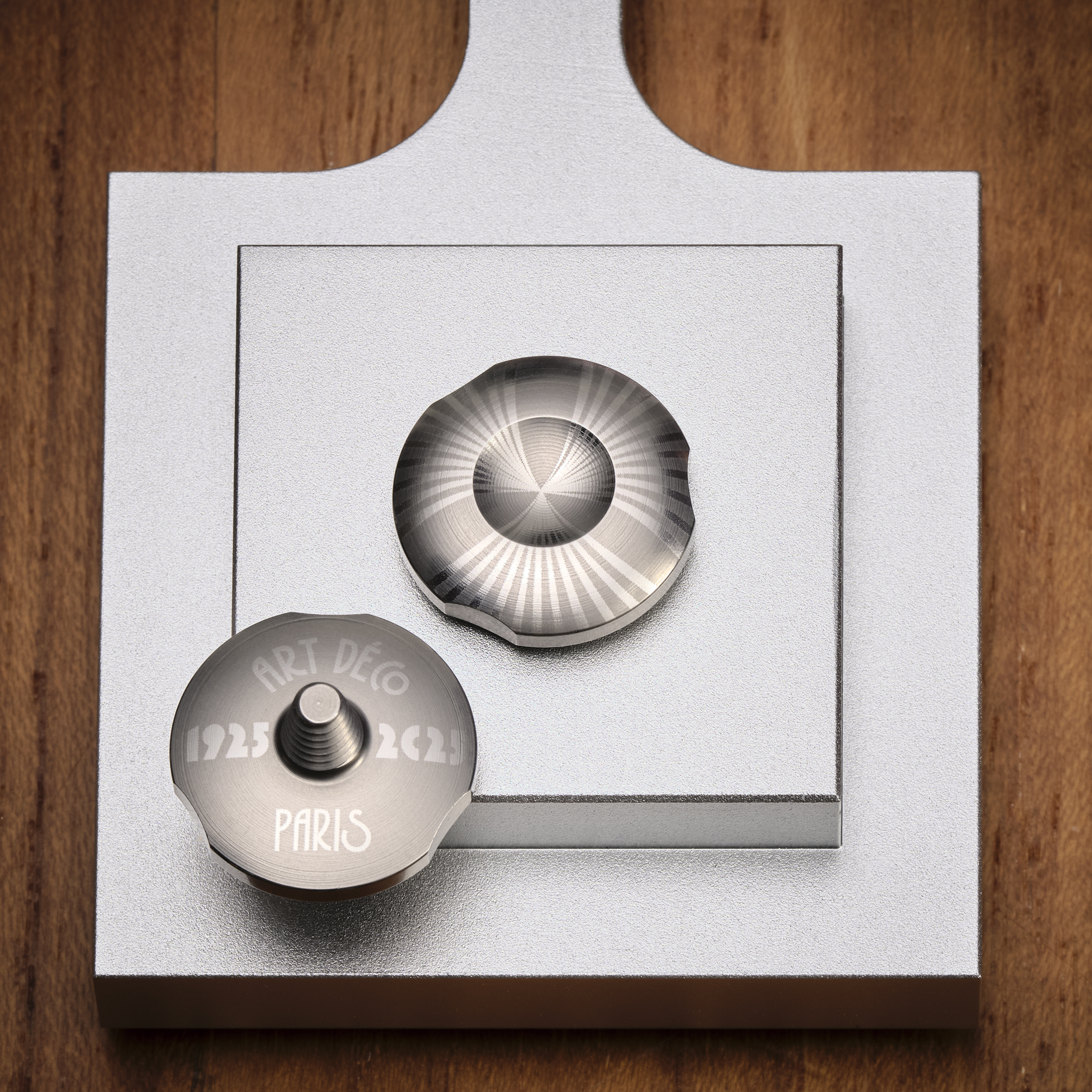 Sa finition satinée révèle de délicats contrastes d’ombre et de lumière, tandis que des gravures exclusives, conçues spécialement pour cette édition, évoquent la géométrie raffinée des motifs Art Déco.